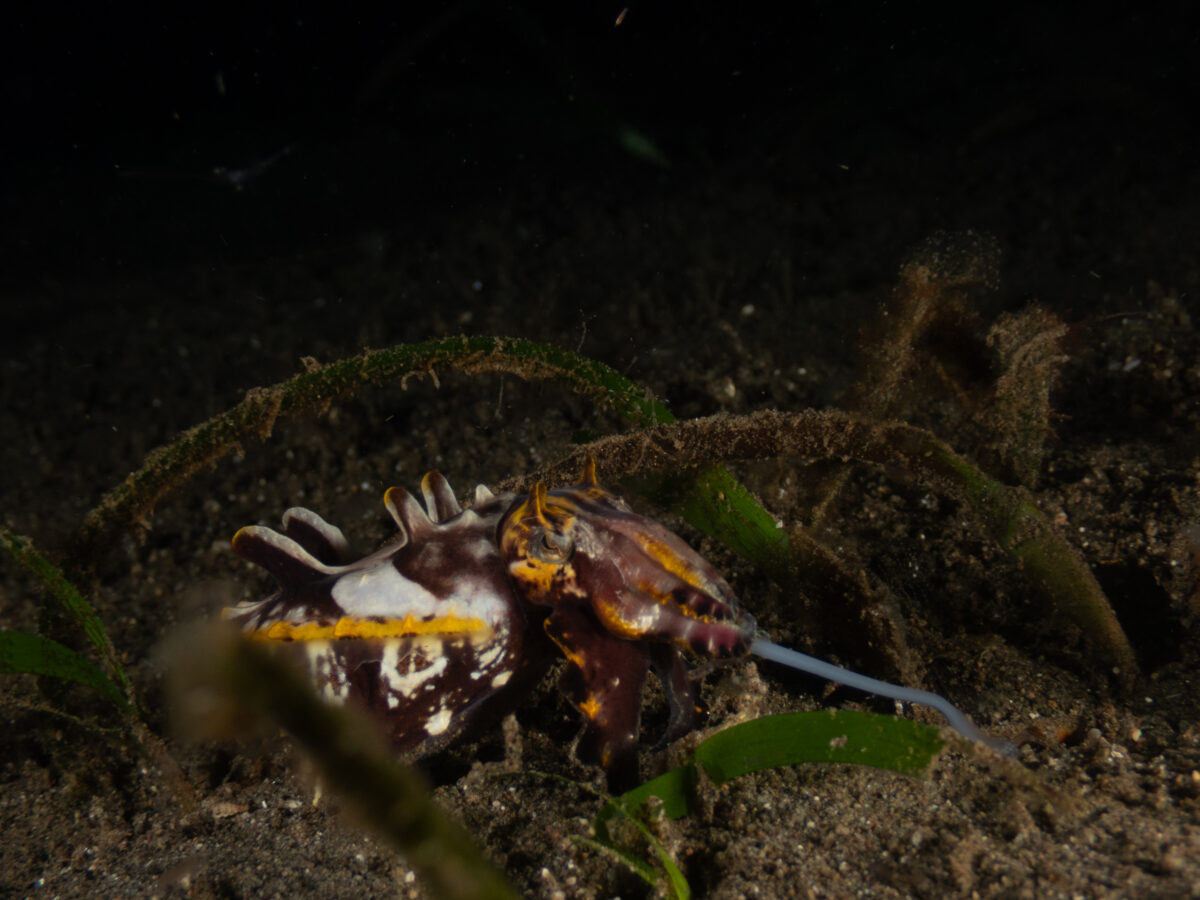 I found myself admiring a Flamboyant Cuttlefish displaying its mesmerizing pattern of colors while trying to capture in a photo the exact moment when it launches its proboscis to capture its prey. It happens so fast it is very challenging, but I am patient enough that after many tries, I got it! It is not the best photo, but this trip has taught me that to become a good photographer you need patience and much practice.