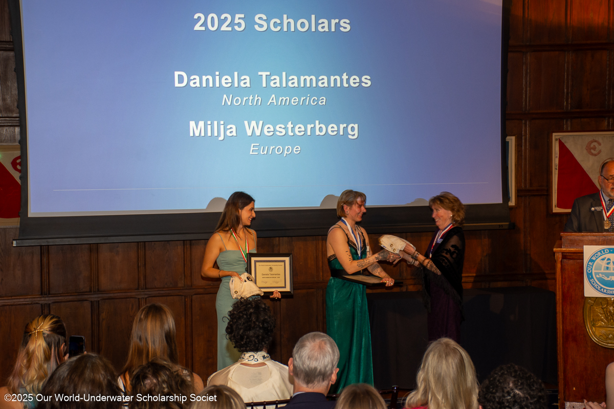 A big thank you to Our World-Underwater Scholarship Society for giving me this dream opportunity. Thank you to all my sponsors: Aqualung, Drysuits Unlimited International (DUI), Faith Ortins/Blue Green Expeditions, Fourth Element, and Backscatter for giving me the gear and tools I will need during my year.