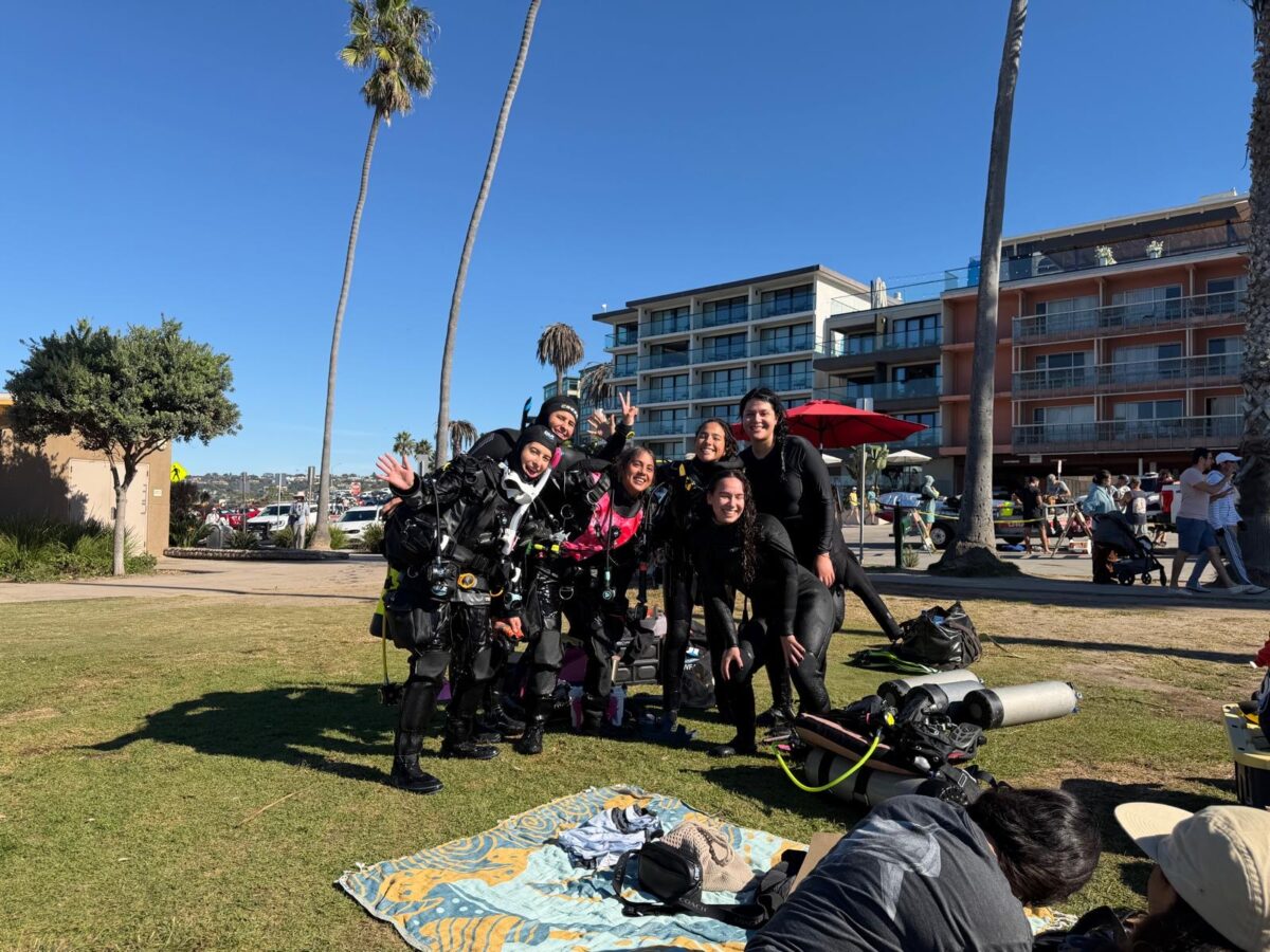 The next day we went to La Jolla Cove and joined the Baja Seasters, a group of Mexican women divers who created a community with the purpose of promoting diving among women. Every month they get together and dive as a community. I was lucky enough to be invited and met many incredible women, especially Jessica Pantoja, who was an OWUSS intern in 2023. It was very heartwarming to dive and chat with another Mexican who is part of the OWUSS family and to learn more about her work surveying kelp forests. Many people stared at us and were surprised to see a large group of only women divers. Meeting this amazing community of Mexican women divers made me reflect on the importance of these spaces. Diving has been historically dominated by men, and even though more women are joining every day, there is still more to do.